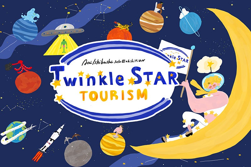 SNSを中心にその独特な世界観が注目を集め、アパレルやアーティストとのコラボも数多く手がけるAki Ishibashi。今回の展示では、架空の観光会社「Twinkle STAR TOURISM」が企画する“宇宙をめぐるツアー”をテーマに、独創的なアート作品を通じて、訪れる人々を小さな宇宙旅行へと誘います。惑星に暮らす不思議な生き物や飛行船、スペースシャトルが描かれた作品群に囲まれながら、誰もが気軽に未知の宇宙を旅するようなひとときを楽しむことができます。
