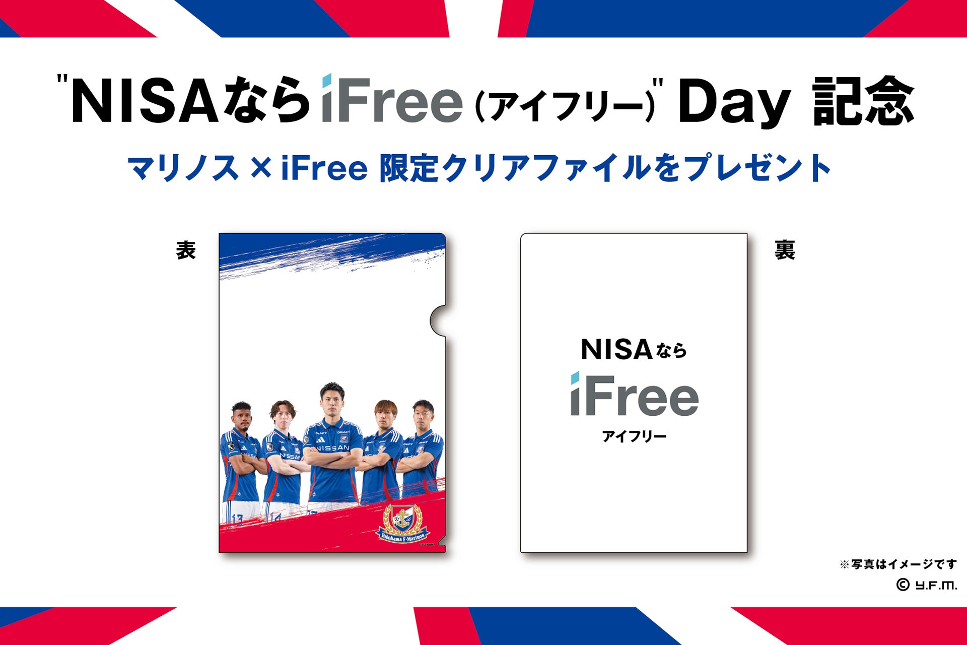 ”NISAならiFree(アイフリー)”Day の開催を記念し、スタジアム入場時に入場ゲートにて、先着30,000名様に横浜F・マリノスの人気選手が描かれたオリジナルクリアファイルを配布します。