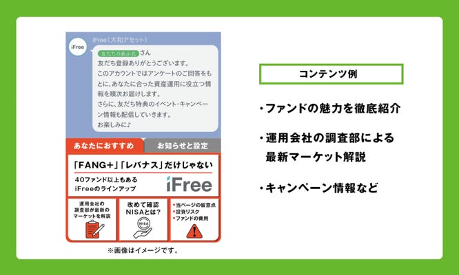 iFree(大和アセット)LINE公式アカウントを開設。簡単なアンケートへのご回答で、あなたに合った「資産運用に役立つ情報」をお届け