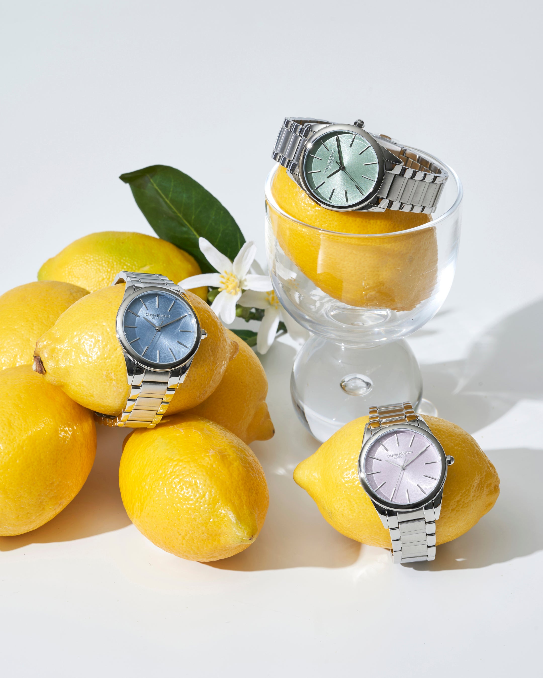 クラシカルな美しさに遊び心をひとさじ加えた、ロンドンブランドならではの感性が光るこのコレクションは、ロリポップのスワール模様、砂糖菓子のようなテクスチャー、そしてとろけるようなカラーリングにインスパイアされています。ミントグリーンやスカイブルー、ピンククラッシュ、ペールラベンダーといった“キャンディカラー”が手元を彩るウォッチは、思わず心が躍る“GLOWFUL”な存在感。クラシックなシルエットに旬のムードをまとわせた、まさに“新しい定番”です。