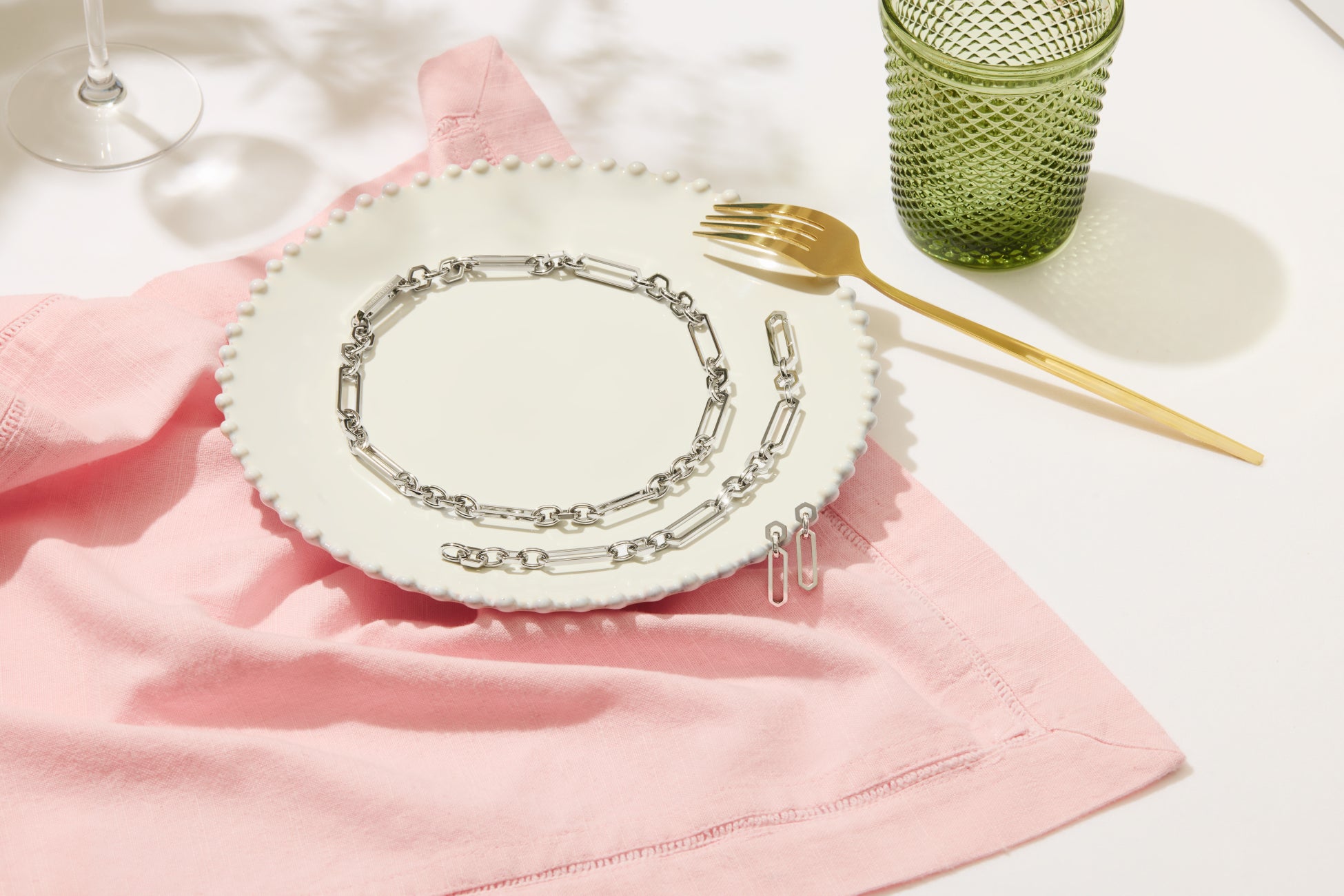 また、アクセサリーライン“Hex Link”では、ブランドの象徴であるハニカムモチーフを大胆に再構築。重厚感のあるチェーンに抜け感を加えた、日常にも特別な日にも映える新しい“ステートメントジュエリー”が誕生しました。