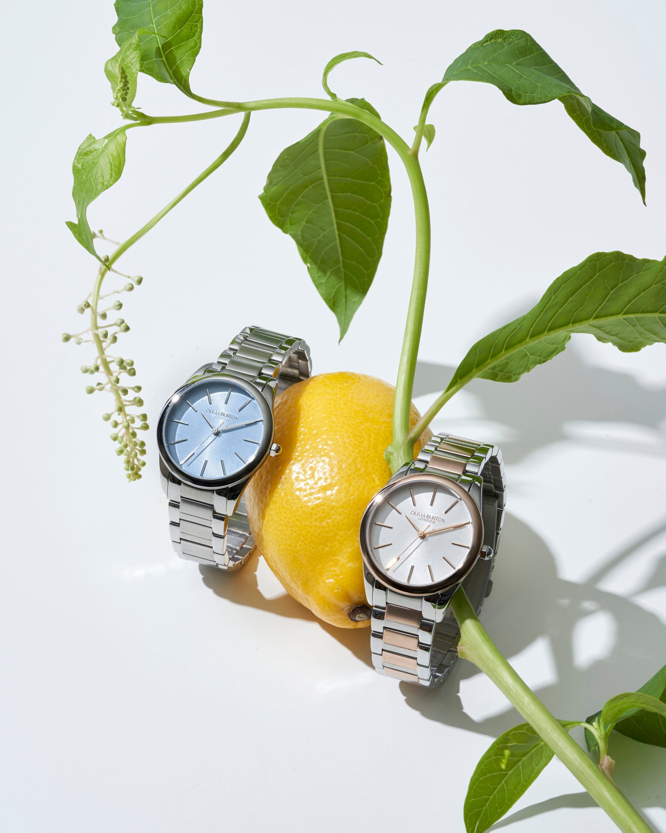 オリビア・バートンは、2012年に元ファッションバイヤーのリーザ・ベネットとジェマ・フェニングスがロンドンで立ち上げたファッションウォッチブランドです。ロンドン・カレッジ・オブ・ファッションで出会った2人は、SELFRIDGESやASOSでのバイヤー経験を経て、「スタイリッシュで手頃な価格の時計ブランドがない」という市場のギャップに着目し、ブランドを設立しました。シンプルでシックなデザインに、トレンドとコンテンポラリーなエッセンスを融合させたオリビア・バートンの時計は、女性らしさとタイムレスな魅力を兼ね備えています。ブランド名はリーザの叔母の名にちなんでおり、英国百貨店「ハーヴェイ・ニコルズ」でのデビュー後、瞬く間に多くのコレクションが完売。隔月で新作コレクションを発表し、ファッションと同じように時計も季節ごとに楽しめるラインナップを展開しています。