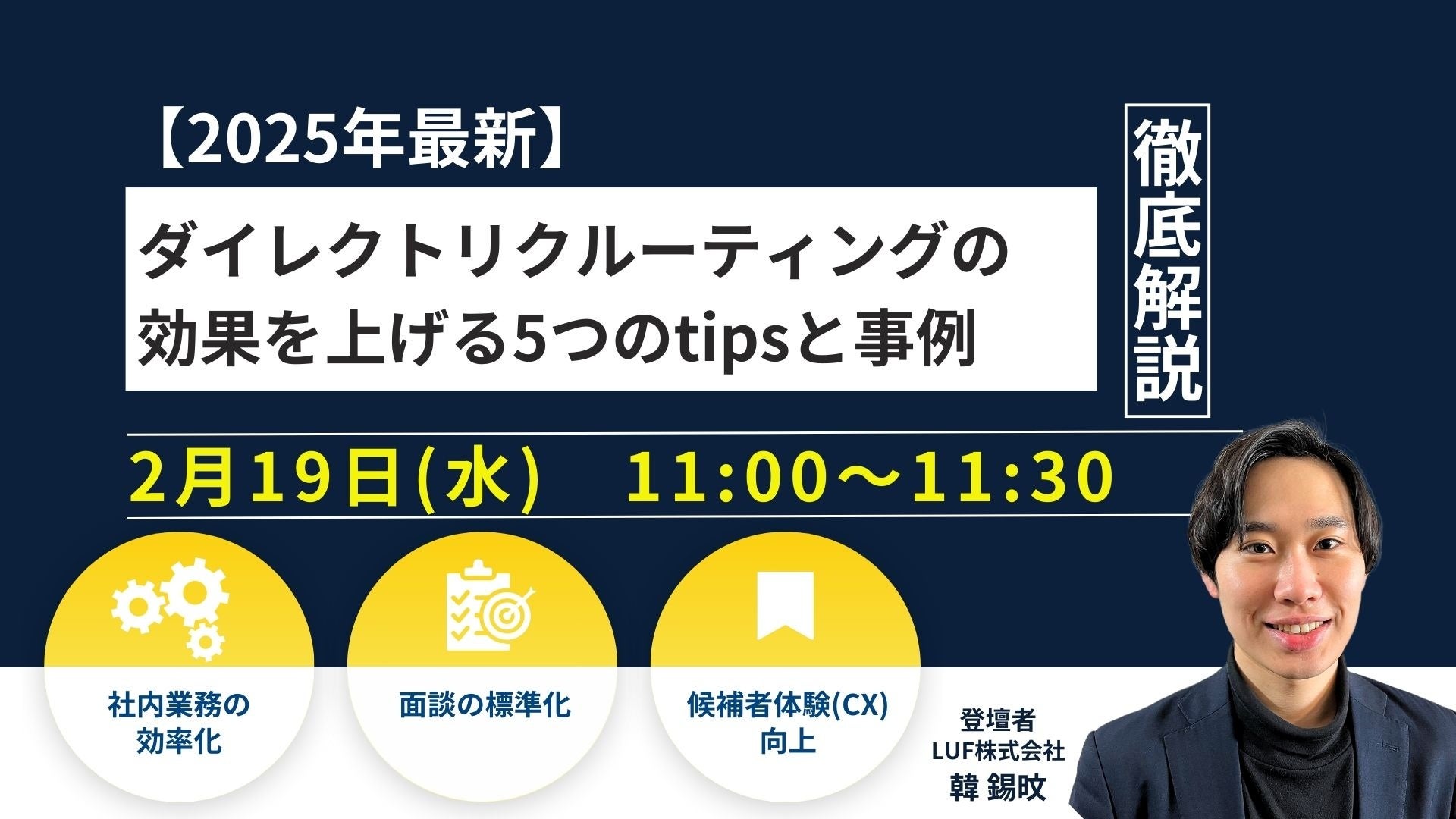 LUF株式会社登壇『【2025年最新】ダイレクトリクルーティングの効果を上げる5つのtipsと事例を解説』ウェビナーのアーカイブ動画の無料配信を開始!