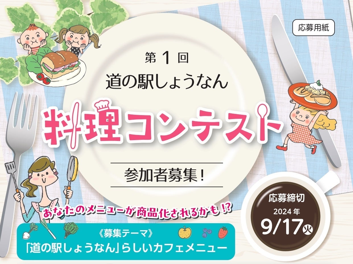 テーマは「道の駅しょうなんらしいカフェメニュー」です。道の駅で思わず食べたくなるメニューや、地元食材を使ったメニュー、道の駅しょうなんをイメージしたメニューなど、皆様の色々なアイディアを募集しています!