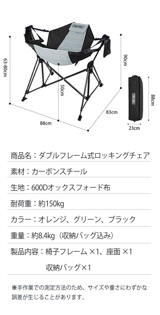 「ダブルフレーム式ロッキングチェア」にはアウトドアでくつろげる収納機能も充実しています。