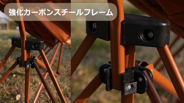強化カーボンスチールフレームを足部分には2本使用した強化型ダブルフレーム構造を採用しました。不安定なアウトドアでも安定して身体を支えます。