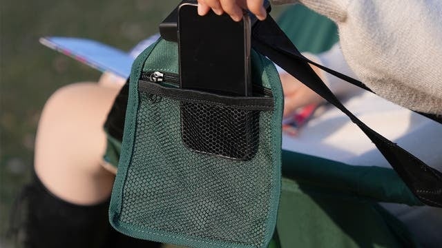 座って左側にはスマホや鍵等の、貴重品や軽食、小物の収納に便利なメッシュのミニポケットがあります。大切な小物はここに入れてリラックスタイムを過ごしましょう。