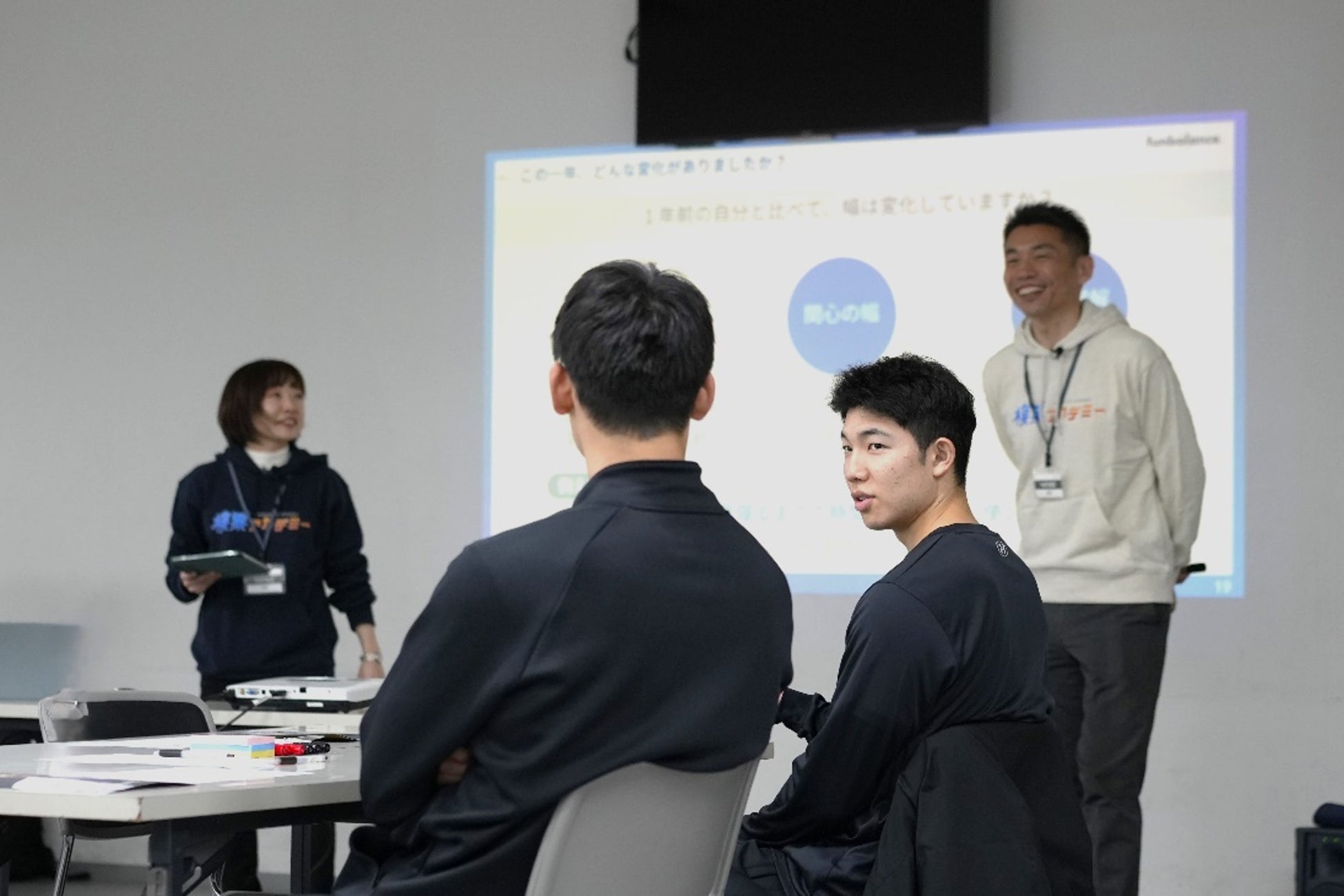 前半では、「人生100年時代」を見据え、キャリアとは競技成績だけでなく、これまでの経験すべての積み重ねであるという考え方を共有し、キャリアデザインや偶発的な出会いの重要性について学びました。