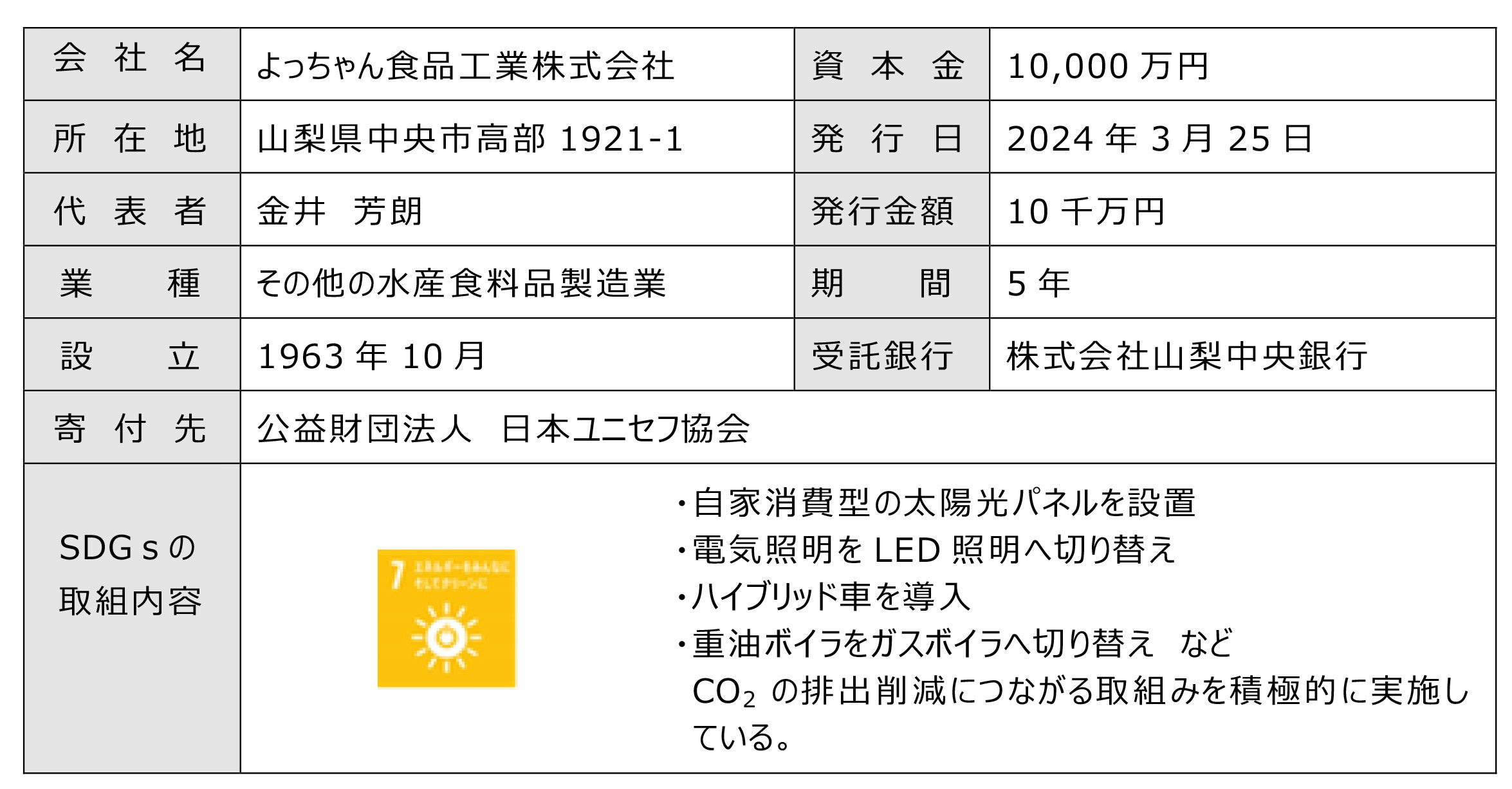 株式会社山梨中央銀行(頭取 古屋 賀章)は、寄付オプション付私募債「山梨中銀SDGs私募債」3件/4.5億円を受託しました。