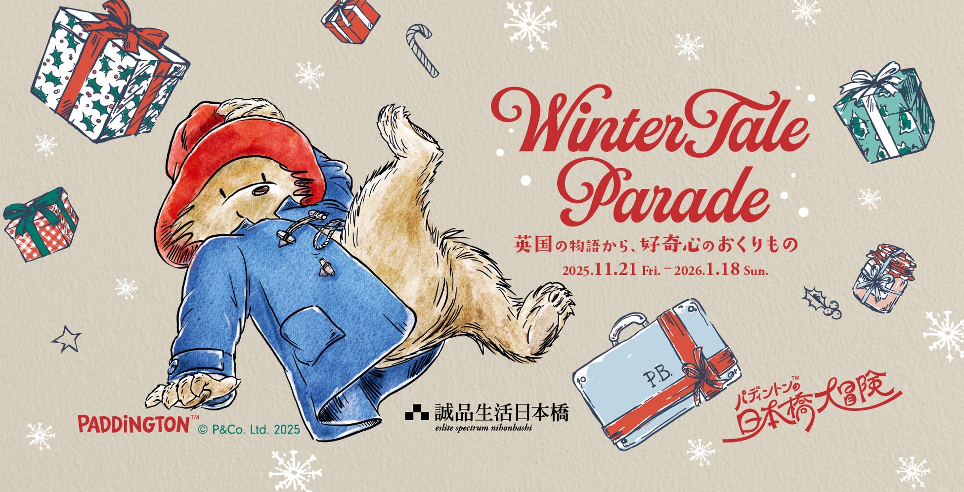 株式会社有隣堂(本社:神奈川県横浜市、代表取締役 社長執行役員:松信健太郎)は、2025年11月21日(金)から2026年1月18日(日)の期間、誠品生活日本橋にて季節企画「Winter Tale Parade ~英国の物語から、好奇心のおくりもの~」を開催いたします。本企画は、同時期に日本橋エリアで展開される三井不動産主催の「パディントン™の日本橋大冒険」と連動し、誠品生活日本橋ならではの視点から「英国の冬の物語」を楽しむ文化体験を提案するものです。