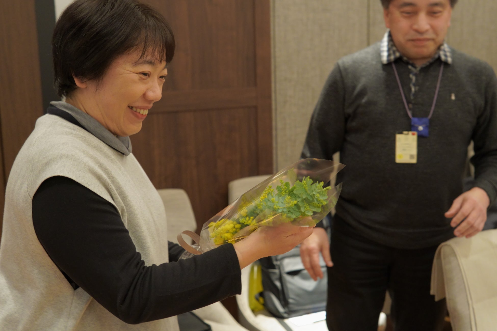 イベント終盤には、国際女性デーの象徴でもあるミモザの花をパートナーへ贈る時間を用意。