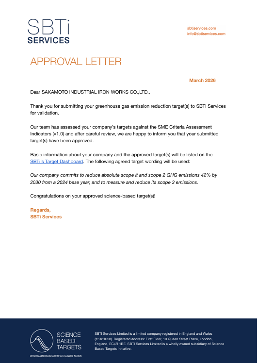 坂本工業株式会社による「SBT認定取得」のお知らせ