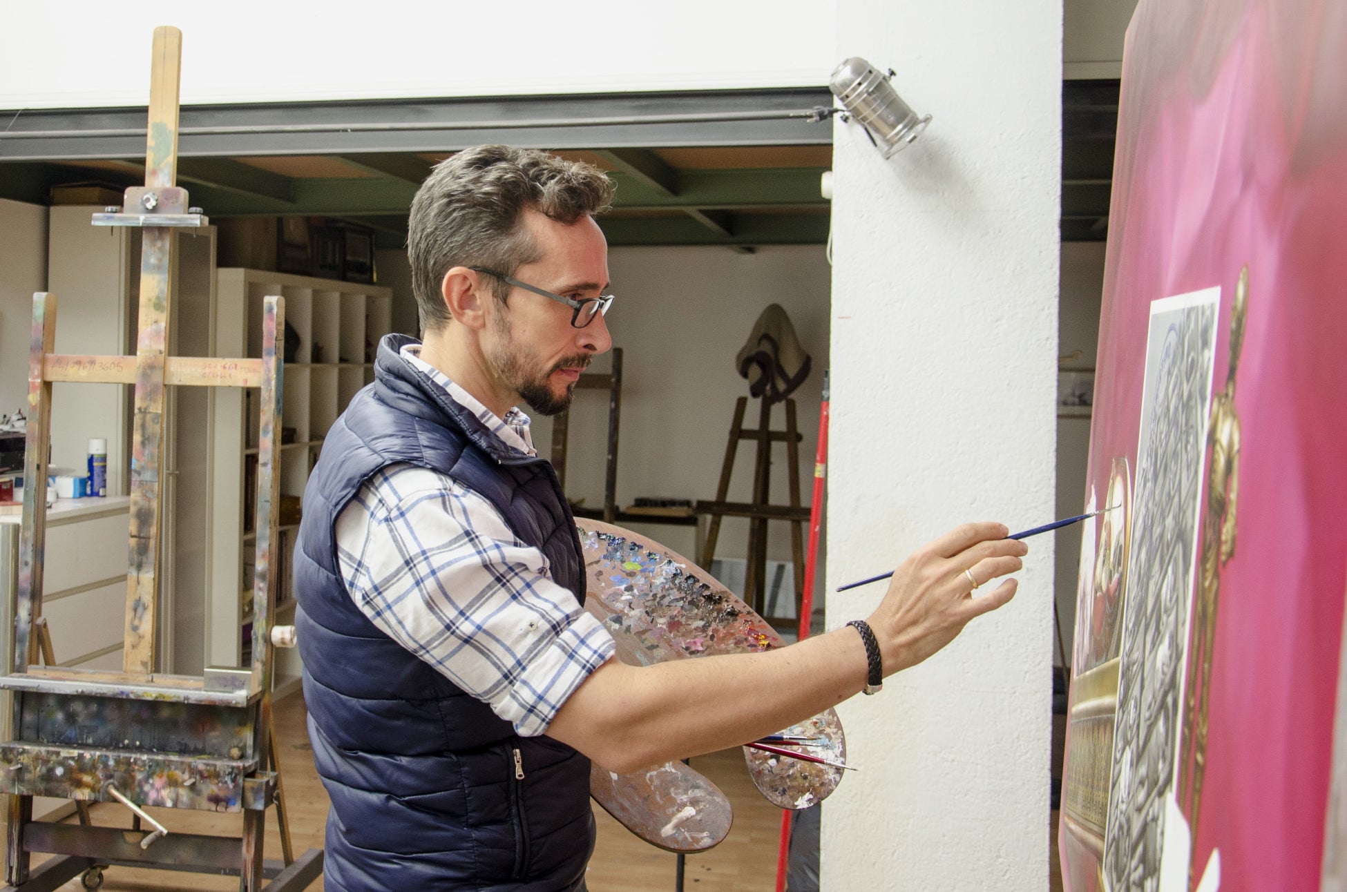 1970年、スペイン・マドリード生まれ。14歳からスペイン伝統のバロック絵画を学び、1993年にはコンセプチュアル・アート(概念芸術)の第一人者ペドロ・カルヴァンに師事しました。伝統と現代性をあわせもつ独自の画風を確立し、2006年ギャルリーためながパリでの初個展を皮切りに、世界各国のアートフェアに参加するなどグローバルに活躍しています。彼の作品はスペインの美術館や財団、日本の地中美術館(香川・直島)にも収蔵されており、世界中から高い評価を受けています。