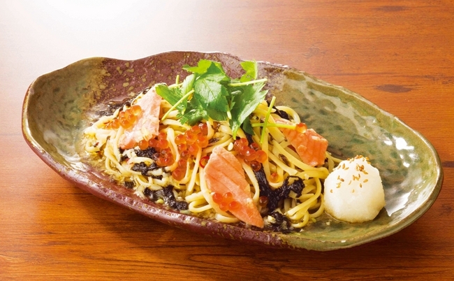 ■メニュー一例: 日高豚と茄子のシシリア風 661円 / サーモンといくらの岩海苔仕立て 766円 / きのことベーコンのカルボナーラ風 S・409円 L・766円