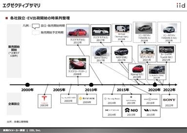 ・各社設立/EV出荷開始の時系列整理