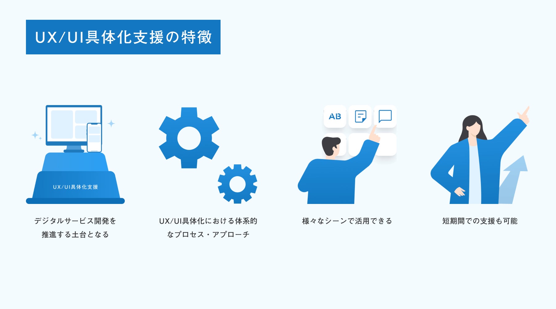 ご相談、およびサービスの詳細に関しては「UX/UI具体化支援」の専用ページよりご確認をお願いいたします。