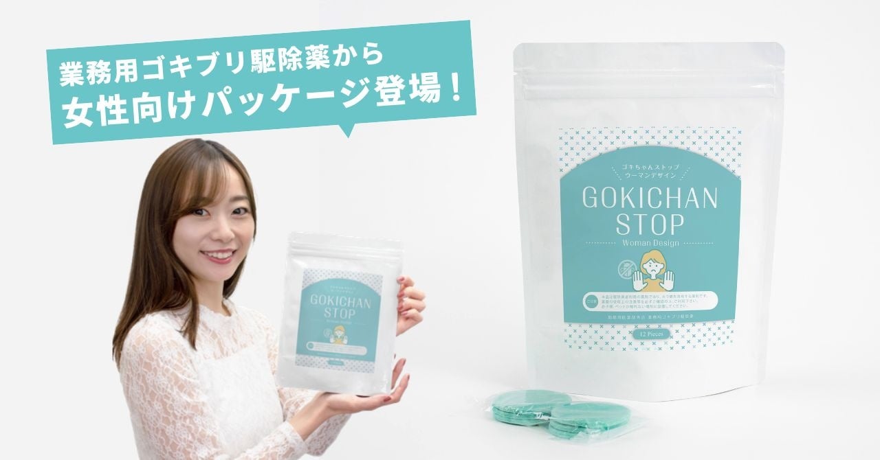 - 業務用駆除薬として圧倒的に支持されている「ゴキちゃんストップ®︎」が中身そのまま女性向けパッケージに!