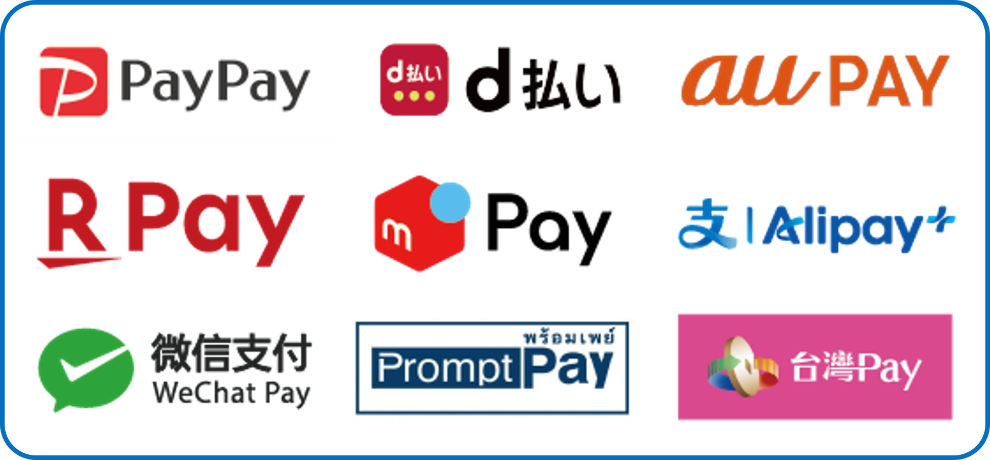 Tapionが対応するQRコード決済は、「PayPay」や「d払い」をはじめとする国内の主要ブランドから、「Alipay+」「WeChat Pay」などの海外ブランドまで9種類です。加盟店様はTapionを利用するだけで多様な決済方式を運営でき、業務の効率化と幅広い客層の集客機会の創出、さらに円滑な取引による顧客満足度の向上を図ることができます。