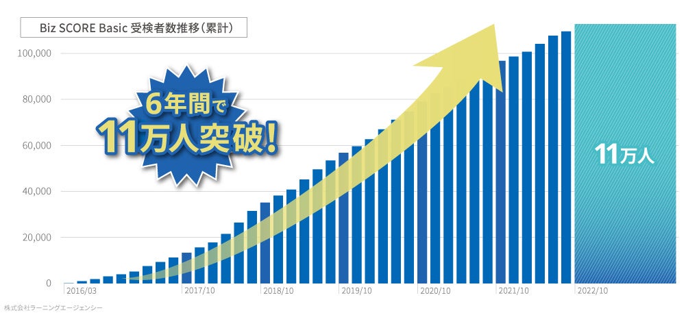 Biz SCOREシリーズは、『新しいスキルを習得するためのスキル』である、幅広いビジネススキル・知識がどのくらい身についているかを可視化できる診断テストです。定量での判断が難しいとされる社員のスキル、知識をスコアという目に視える形にすることを実現しました。リスキリング施策を成功に導きたい企業、社員のスキルを可視化して人的資本経営に生かしたい企業、社員に何を学ばせていいか迷っている企業など、業界・業種問わず多くの企業の皆様に導入いただいています。結果、Biz SCOREシリーズの中でも全てのビジネスパーソンを対象としたビジネススキル診断テスト「Biz SCORE Basic」は今年の2月に受検者数10万人を突破、そして10月には11万人を記録しました。今秋の受検者は前年同月比40%増となり、なおもリスキリング、人的資本への意識の高まりとともに、問い合わせ、受検者数が伸長し続けています。