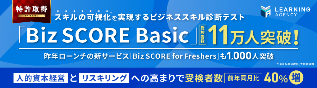 Biz SCOREシリーズは、ビジネススキルの可視化を通して、正しい自己認識と現状把握だけでなく、社員の学びの促進、リスキリングの成功、最適な人的資本経営に繋げていただけるよう、今後もサービスの質向上に努めてまいります。