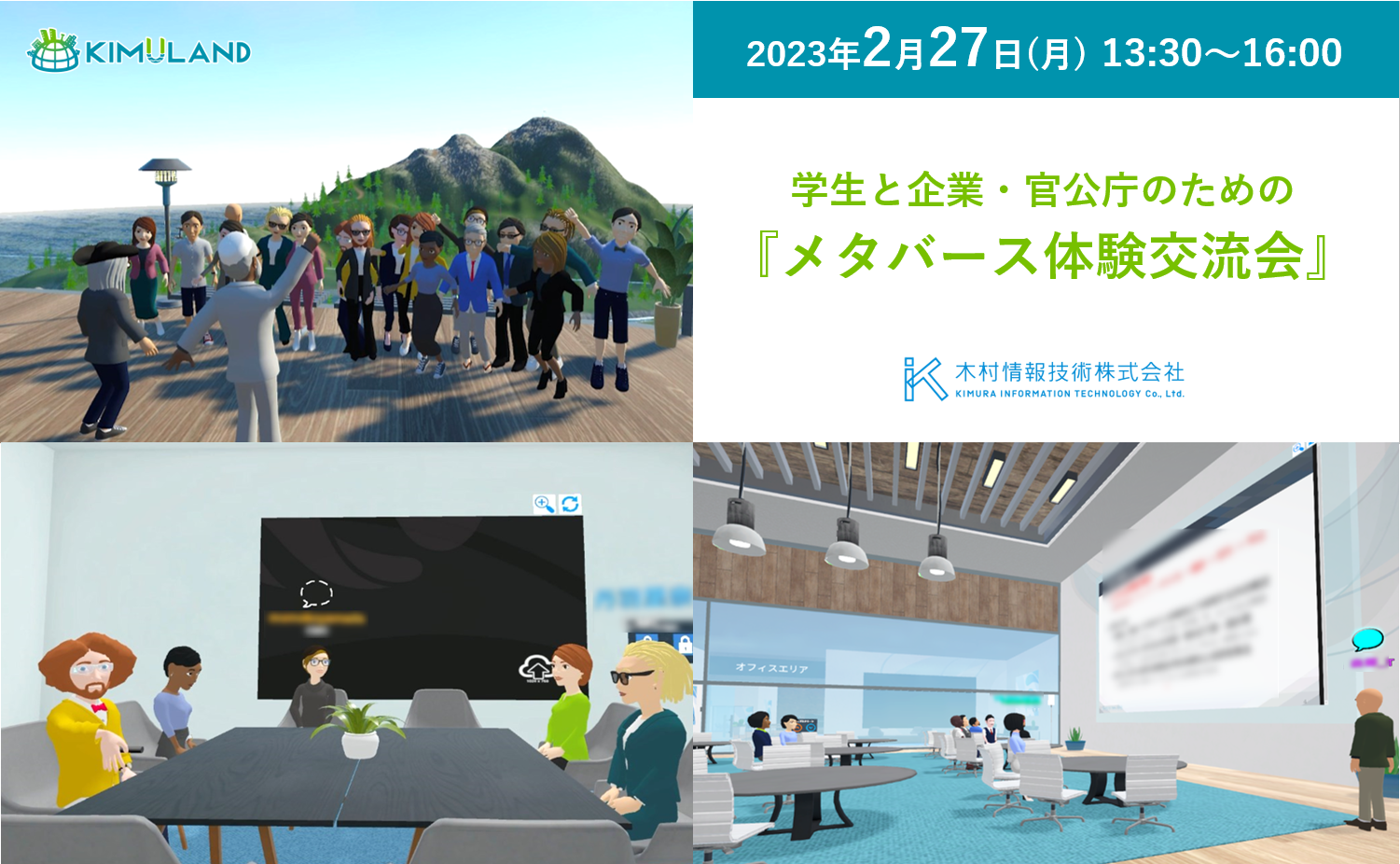 木村情報技術株式会社(本社:佐賀県佐賀市、代表取締役:木村 隆夫、以下「木村情報技術」)は、全国の学生と佐賀県の企業・官公庁が気軽に交流できる「メタバース体験交流会」を、自社オリジナルのメタバースプラットフォーム「KIMULAND(キムランド)」にて、 2023年2月27日(月)に開催します。
