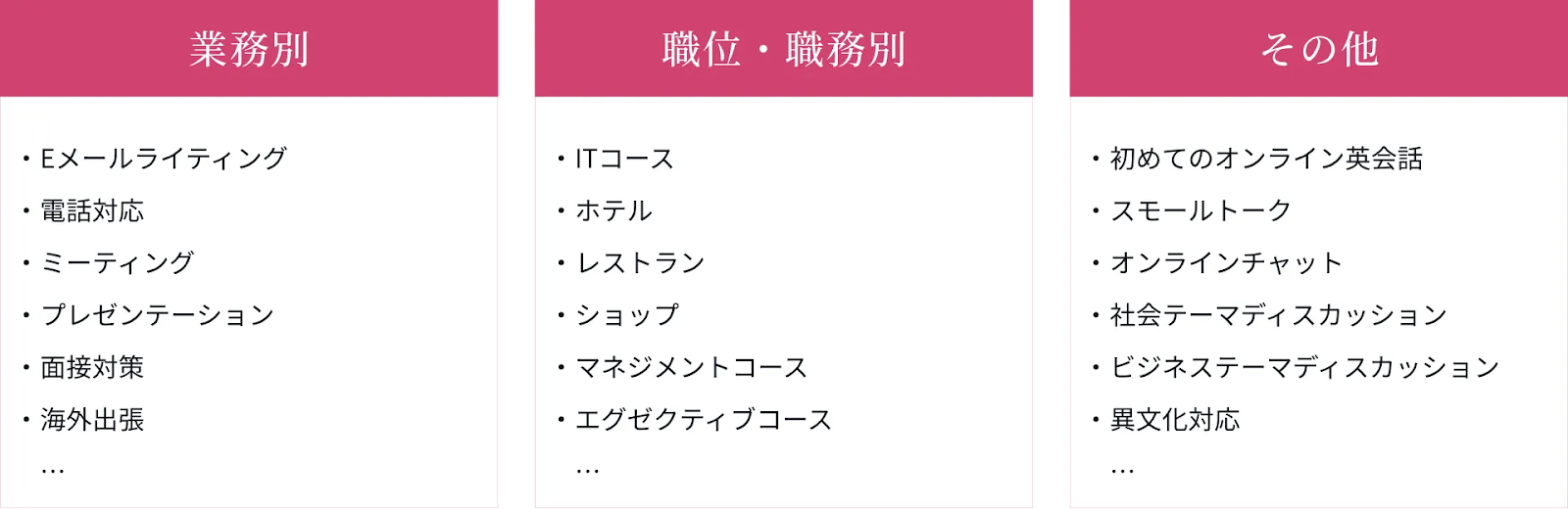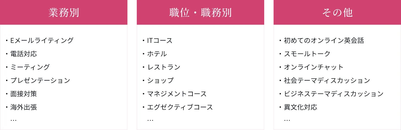 「Other Programs」は全38種類のビジネステーマから学びたいスキルを選択し、特定のビジネススキルを習得できるプログラムです。1つのテーマは全20回のレッスンで構成されているため、1日3レッスン受講した場合、1週間で完結することができます。そのため、休暇中の短期集中学習プログラムとして適しています。