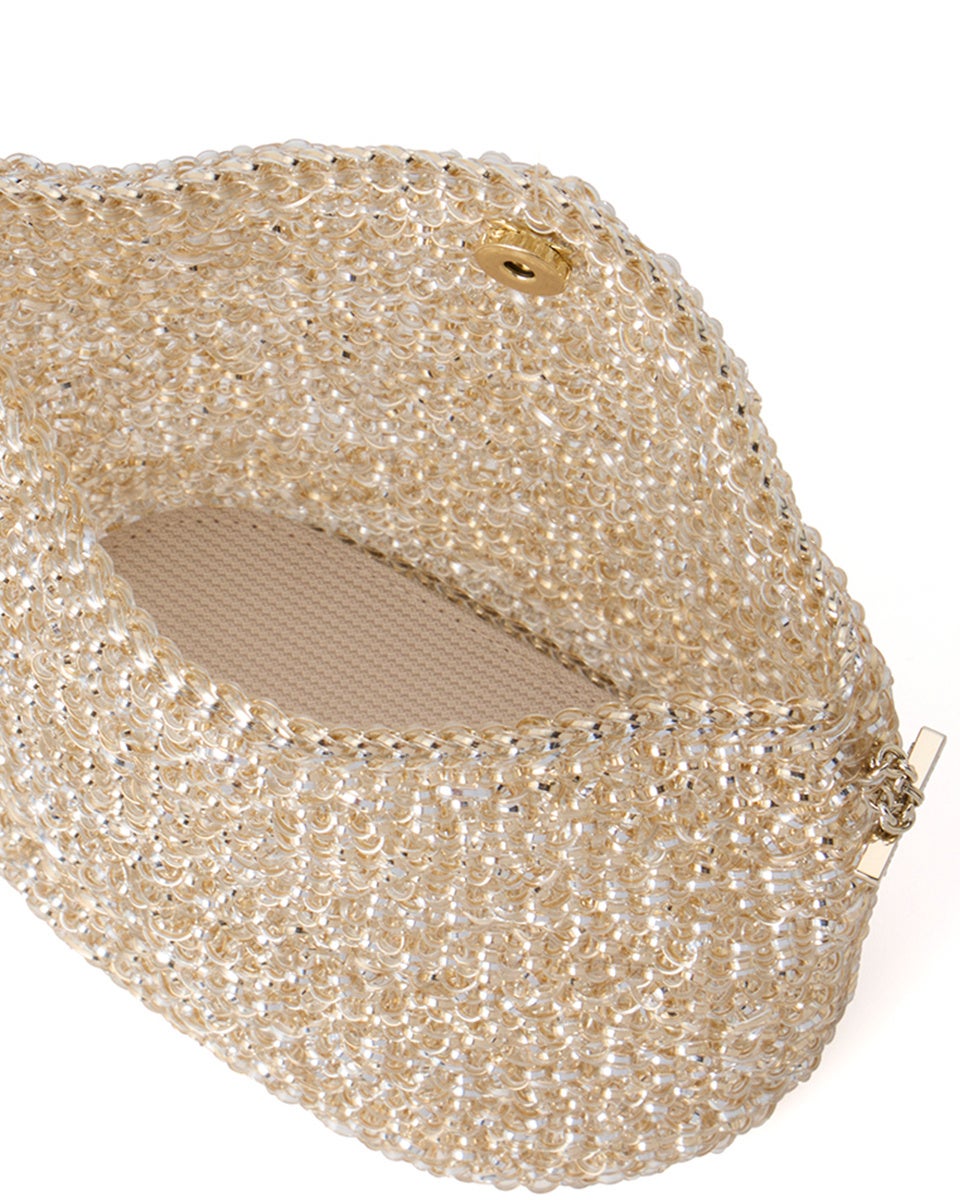 シンプルなフォルムのバケット型ショルダーバッグ「SECCHIO STILOSO(セッキオ スティローゾ)」。通常より細いワイヤーコードを使用し、しなやかさと、繊細な煌めきが特徴です。