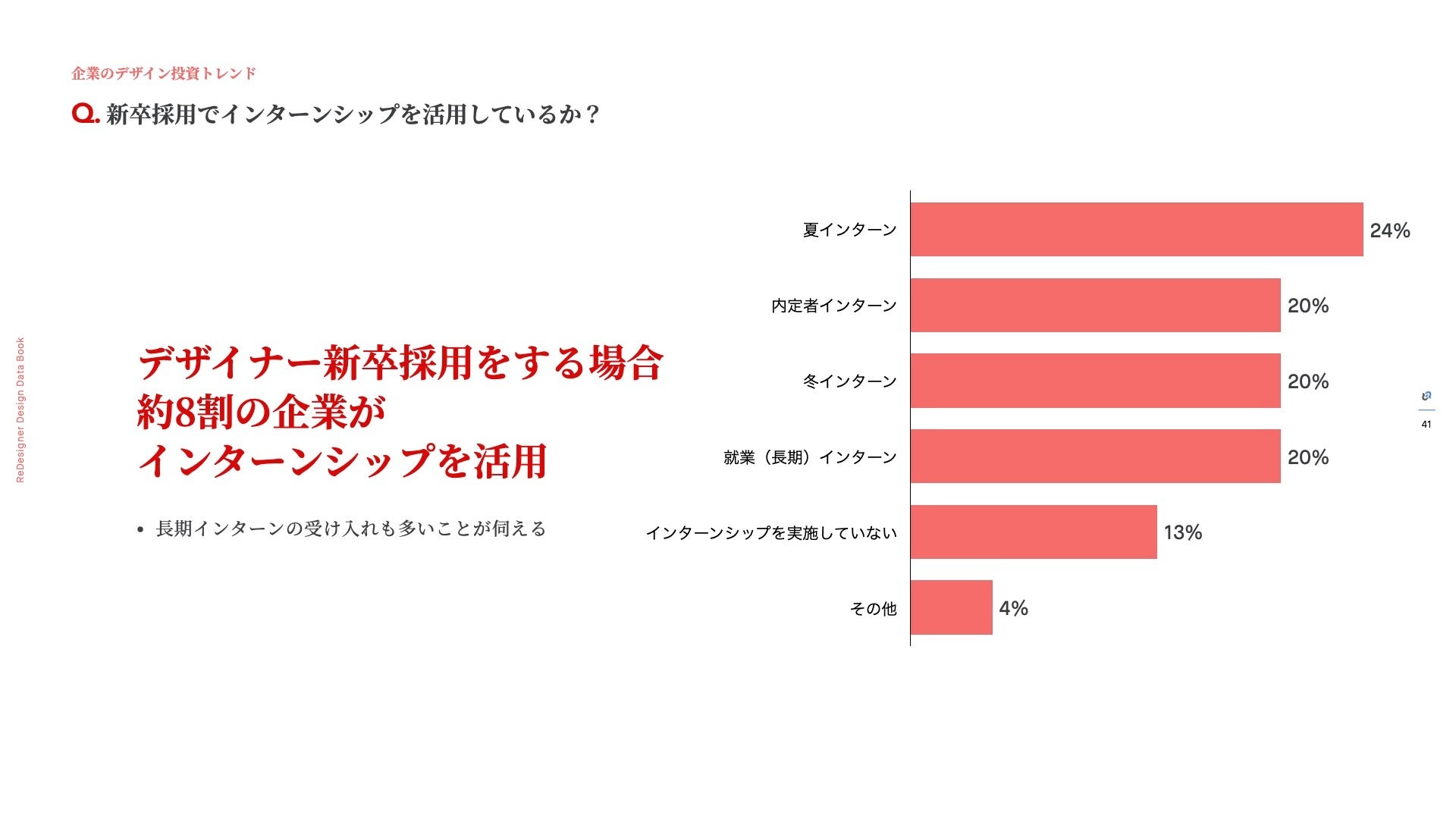 - デザイナー新卒採用において、約8割(84%)の企業がインターンシップを活用