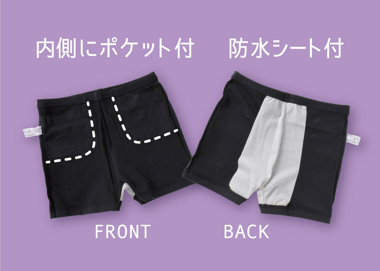 ナプキンをしまっておけるポケット付で、ポーチを持ち歩かなくても安心のサニタリータイプ。綿混素材で柔らかなはき心地に仕上げました。抗菌防臭加工を施した防水シート付のため、制服を汚す心配を軽減し生理中でも安心して過ごすことができる一枚です。