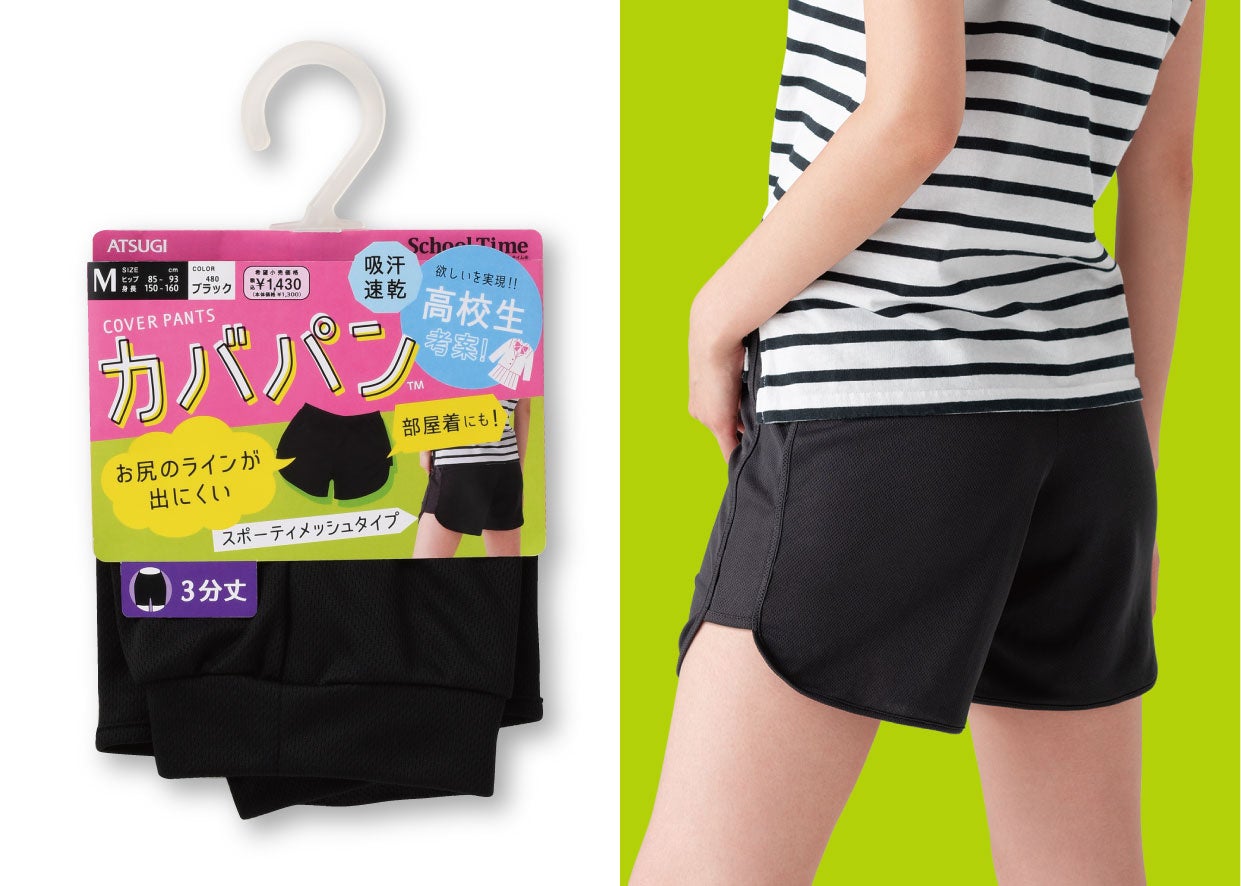 お尻のラインが出るのが恥ずかしい、授業中ずっと座っているとムレやすくて嫌、ピッタリしすぎていると脚さばきが悪くて動きにくい…そんな高校生のお悩みから「カバパン」3商品が誕生しました。