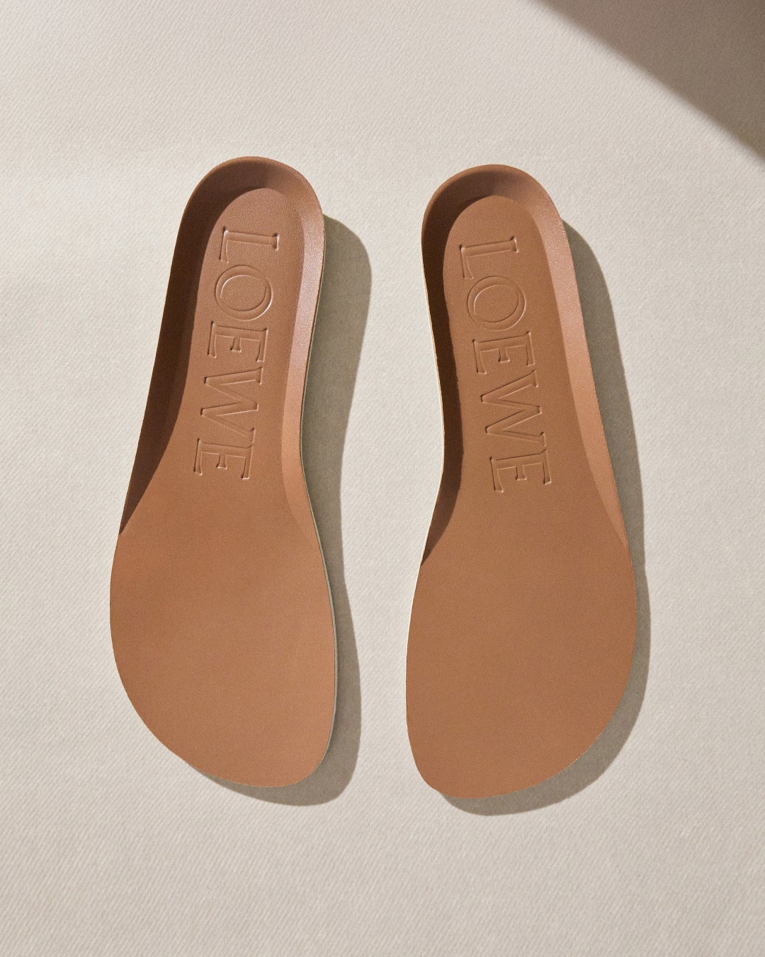 バレエランナー 2.0は、ロエベならではのアシンメトリーなトゥシェイプと1970年代のランニングシューズのデザインを組み合わせています。アップデートされたフローランナーも同時発売となります。そのほかの刷新されたディテールには、クォーター部分の「L」のモノグラムとタンにエンボス加工されたアナグラムのデザイン、トゥキャップまで延びる波状のラバーアウトソールがあります。洗練されたサケット構造(ライニングとインソールを縫い合わせることで、靴の内側に靴下のような構造を生み出す)を採用することで柔軟性と快適性を高めました。ライニングとインソールには柔らかなレザーを採用した、軽量なバレエランナー 2.0。インジェクション成形による新しいラバーロゴを施したカーフスキンのヒールタブは、カラーバリエーションにより同系色またはコントラストの効いたカラーになっています。2種のシューレースが付属します。