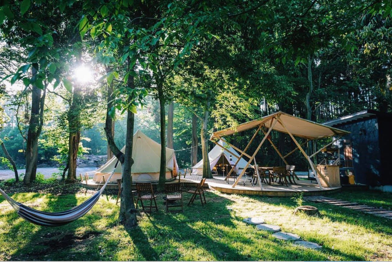 キャンプはもちろん個性的なキャビンや常設テントでの宿泊も可能。