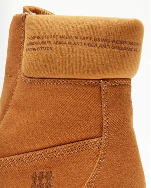 These boots are made in part using responsibly grown rubber, abaca plant fiber and organically grown cotton.