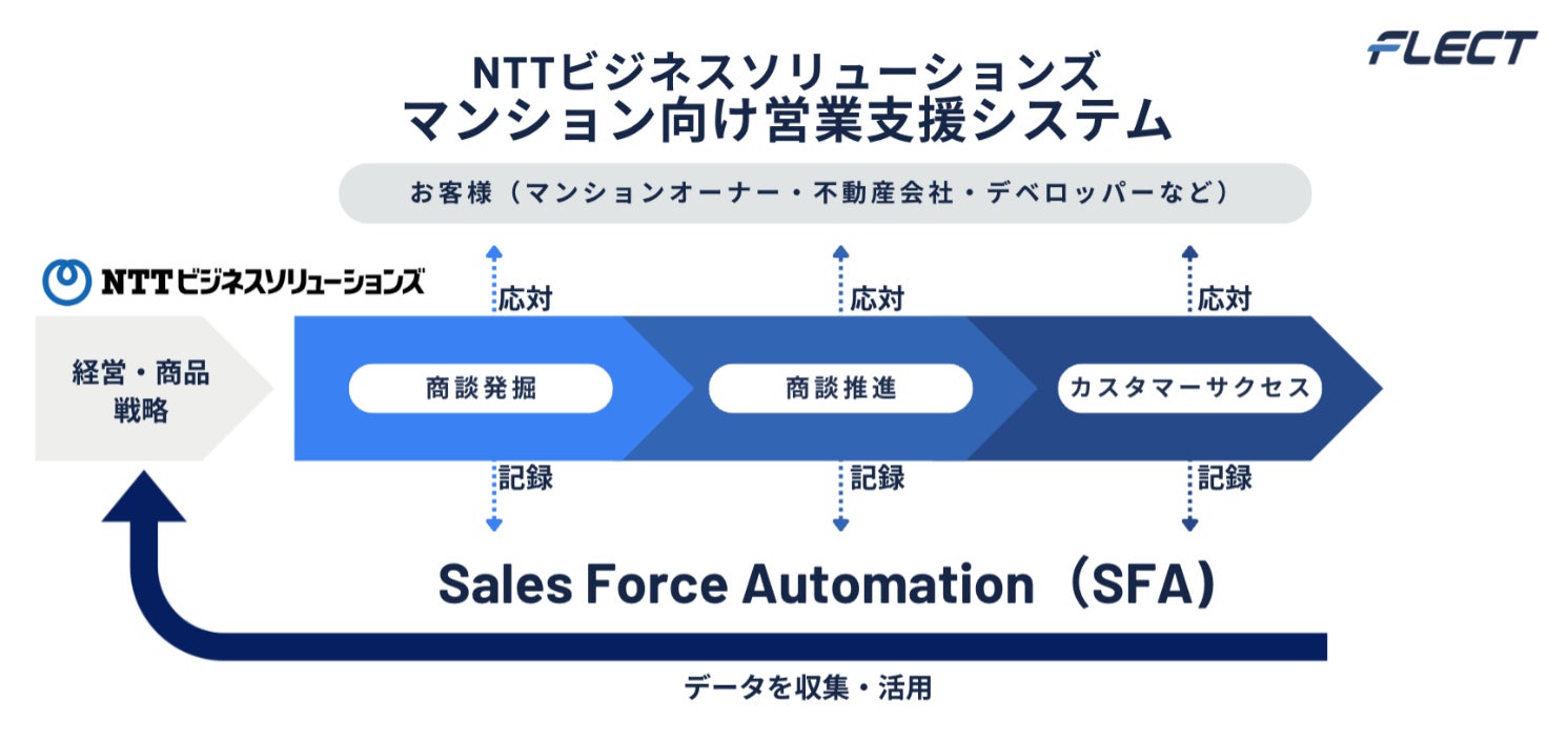 株式会社フレクト(本社:東京都港区、代表取締役 CEO黒川幸治、以下フレクト)は、NTTビジネスソリューションズ株式会社(本社:大阪府大阪市、代表取締役社長 北山 泰三、以下NTTビジネスソリューションズ)のマンション向け営業システムの開発を支援しました。
