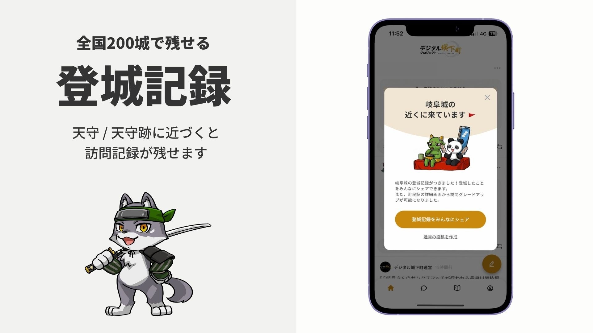アプリは全国200城の訪問(登城)記録を残せる機能、「城活」を報告できる機能などを備えており、お城ファンが気軽にコミュニケーションを楽しめる場となっています。