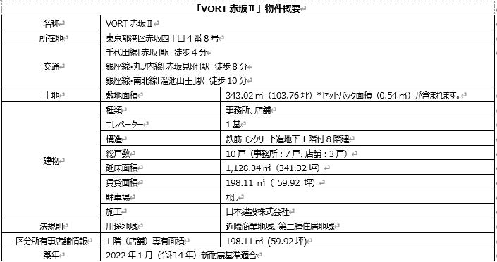 累計販売実績 135億円超!不動産小口化商品『Vシェア®』「VORT赤坂Ⅱ 1階・VORT新橋Ⅲ 7階」を1,600口にて販売開始~2物件セットでの共有持分により、不動産を現物保有~