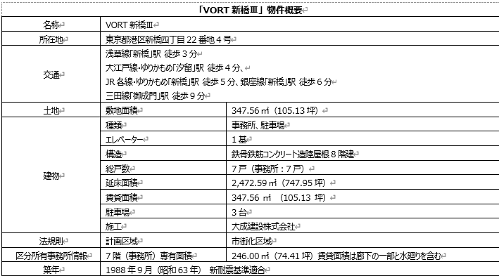 「区分所有オフィス®」を主軸に資産形成コンサルティングを行う株式会社ボルテックス(東京都千代田区 代表取締役社長 兼 CEO 宮沢 文彦、以下当社)は、不動産を活用した資産運用の新しい形態である不動産小口化商品 「Vシェア」において「VORT赤坂Ⅱ1階・VORT新橋Ⅲ7階」の2物件をセットにし、共有持分として販売を開始したので、お知らせいたします。