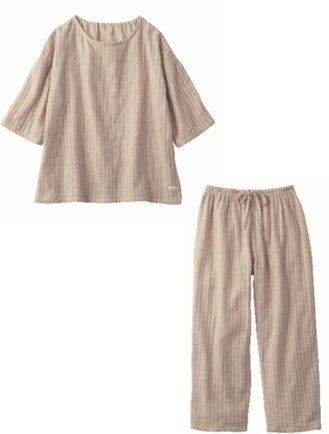 商品名/綿100%三重ガーゼの縫い目が肌にあたりにくい五分袖パジャマ