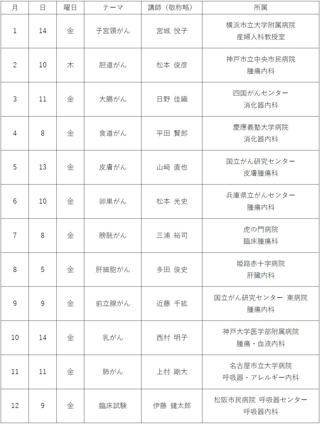 ●大阪がん医療セミナー夜間学校:https://oncolo.jp/event/oos2022