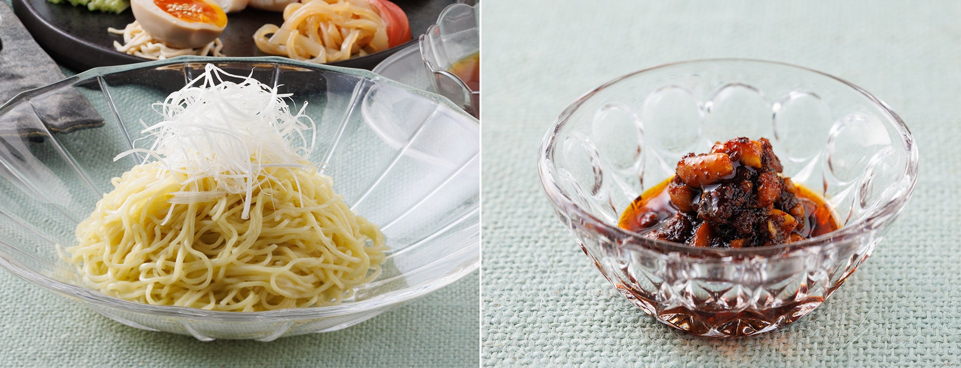 冷麺は、たまご麺と翡翠麺をお選びいただけます。