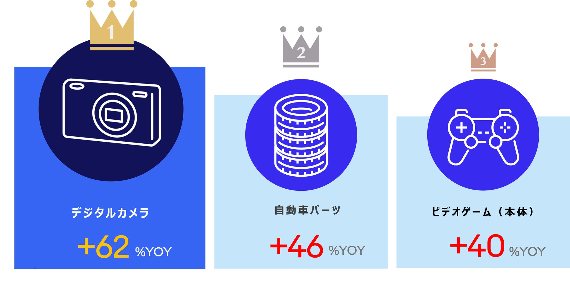 - デジタルカメラが急成長で取引ランキングTOP10入り、成長率1位