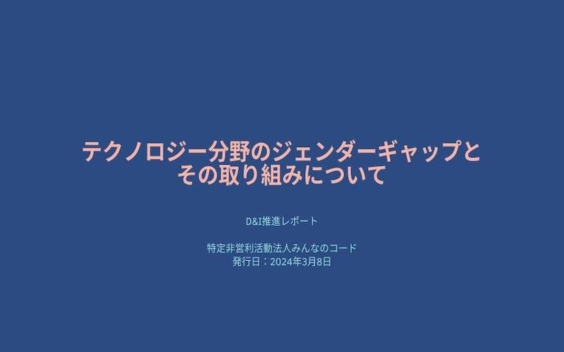 特定非営利活動法人みんなのコード(神奈川県横浜市、代表理事:利根川 裕太、以下みんなのコード)は、「D&I推進レポート〜テクノロジー分野のジェンダーギャップとその取り組みについて〜」を公開しました。