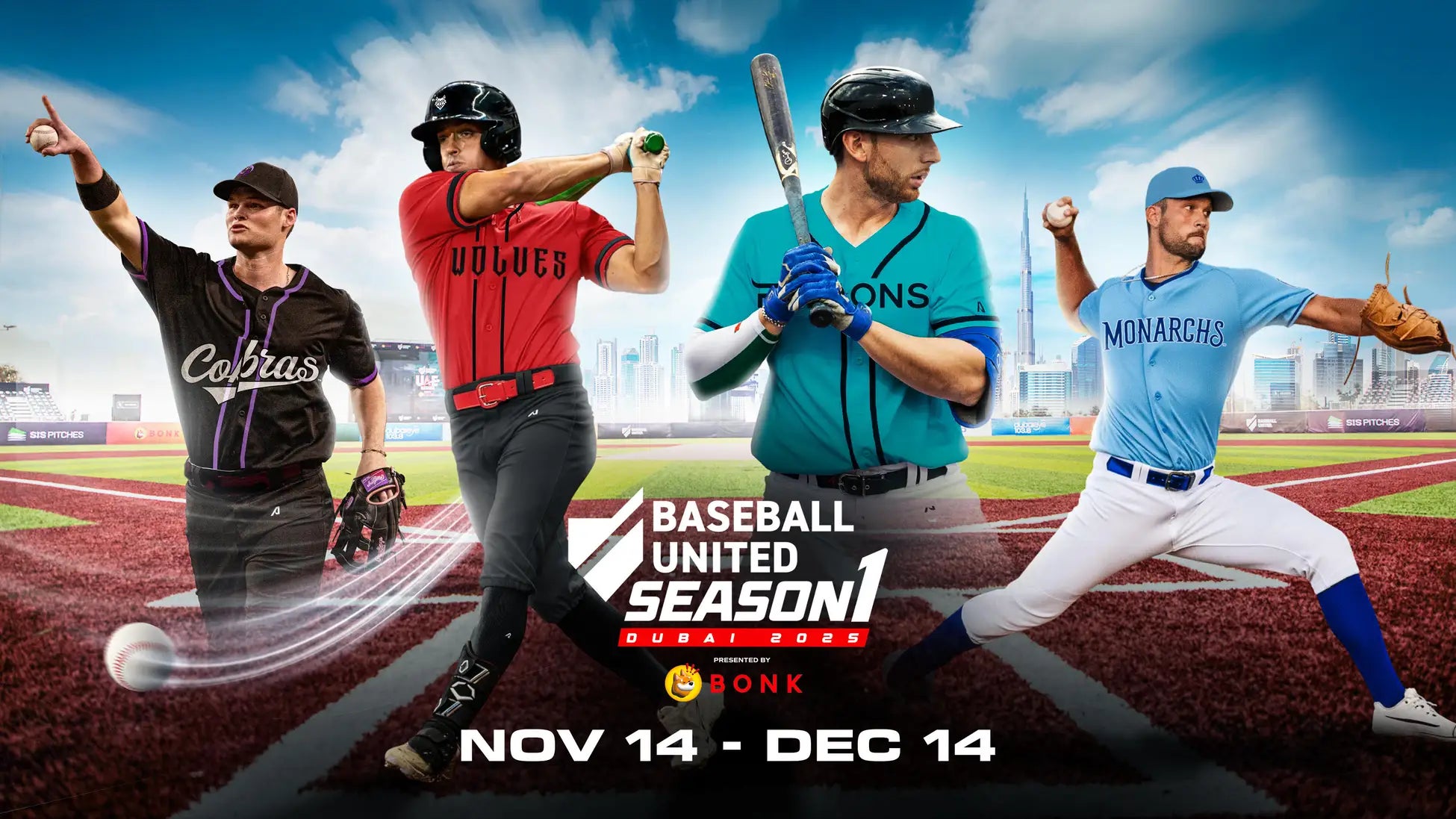 ベースボール・ユナイテッドは、元MLBのレジェンドたちが経営陣に名を連ねる世界注目のリーグです。2025年11月14日〜12月14日の約1か月、ドバイ・アブダビ・ムンバイ・カラチを本拠地とする4球団が参戦。各チームがレギュラーシーズンで9試合を戦い、全体で21試合が開催されます。