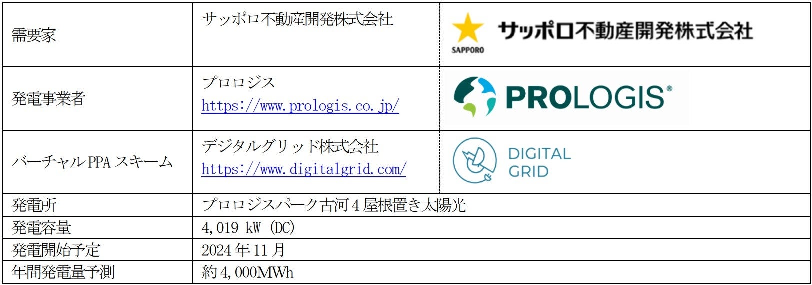 当社はプロロジスから「プロロジスパーク古河4」に設置される太陽光発電設備6MW(DC)のうち、4MW(DC)分の環境価値を2024年11月から調達する予定です。これを実現するスキームとしては、デジタルグリッド株式会社による、FIP制度を活用した独自のバーチャルPPAであるGreen Purchase Agreement®(GPA®)を採用します。