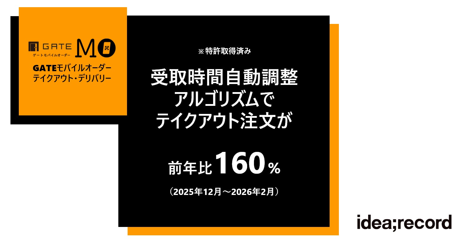 飲食店向け一気通貫プラットフォームサービス「GATEシリーズ」を展開する株式会社イデア・レコード(本社:東京都新宿区、代表取締役:柏田 康雄)は、特許取得済みの「受取時間自動調整ロジック」〔特許第6964841号〕を搭載したテイクアウトシステム「GATEテイクアウト」において、導入店舗での「オペレーション負荷の平準化」と「テイクアウト件数の伸長」を同時に実現する成果が確認されたことをお知らせします。