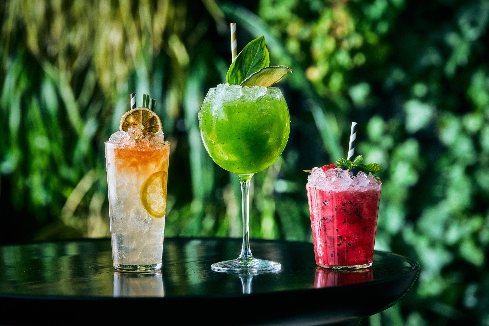 ルーフトップ バーでは、洗練された技法とユニークな素材の組み合わせによって生み出された、ハーブとフルーツの爽やかな香りが重なり合う3種類のミクソロジーカクテル「アーリーサマースマッシュ」を期間限定でご提供いたします。それぞれのカクテルは、ひと口ごとに異なる香りや味わいが広がるよう繊細に仕立てられ、フレッシュな果実の甘み、清々しいハーブ、スパイスのアクセントが絶妙に調和。初夏の夜にぴったりの、奥行きのある味わいをお楽しみいただけます。地上約250mの天空のバーで、個性豊かなハーバルカクテルとともに、心地よいひとときをお過ごしください。