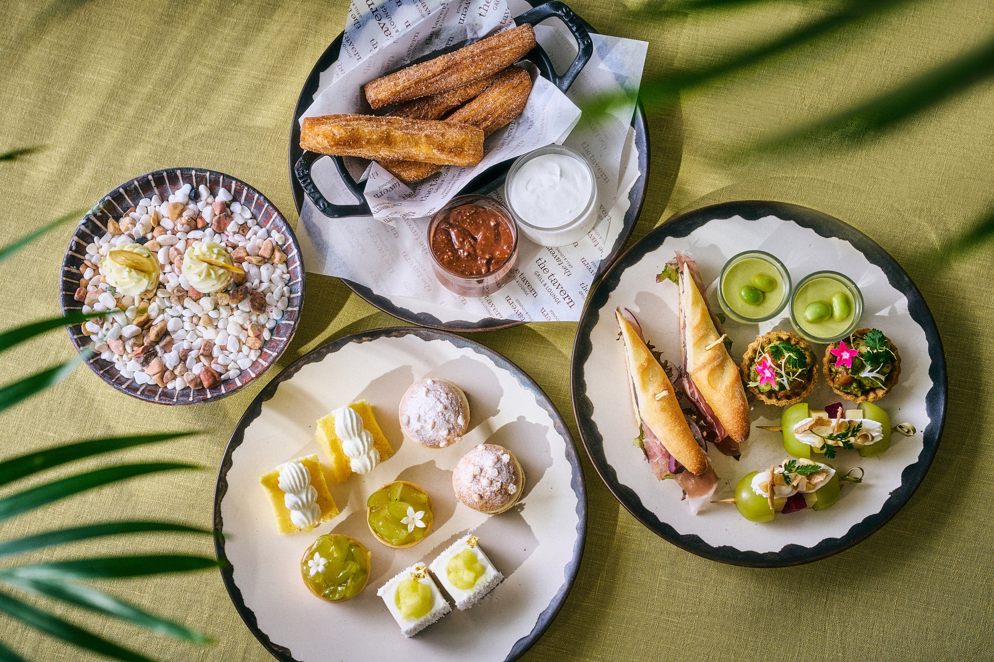 アフタヌーンティーの定番に遊び心を加え、スコーンの代わりに「シナモンシュガー チュロス」をご用意しました。さらに、チョコレート大国と称されるスイス出身のシェフパティシエ ノルマン・ジュビンが手掛ける大好評のチョコレートバーのテーブルサービスに、レーズンを練り込んだホワイトチョコレートが登場。お好みの量で割って楽しむ3種類のチョコレートをフレッシュのマスカットとともにご提供いたします。