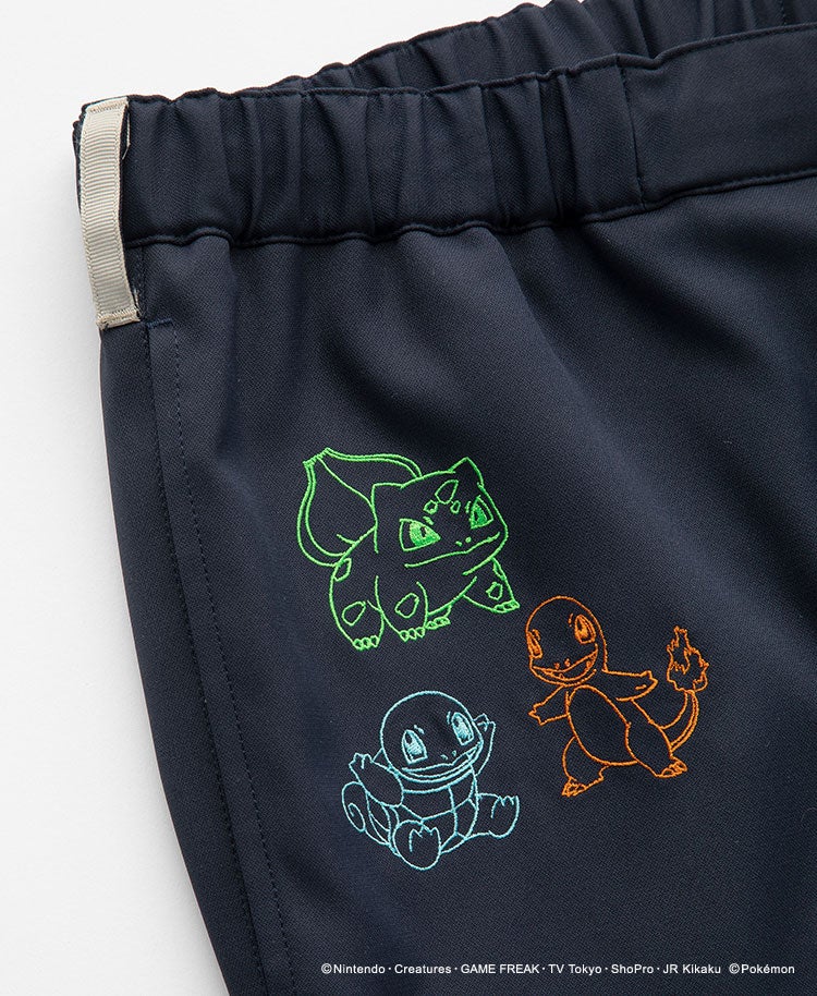 ポケット内側のループや、座っても裾がまくれにくいサイドスリットなど、実用性の高いデザインもポイントです。それぞれのポケモンの名前と図鑑番号はポケットに忍ばせているのでぜひ探してみてください。