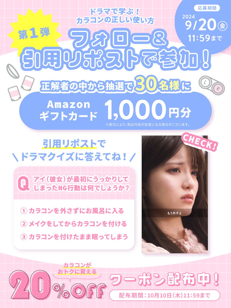 【啓発活動】恋愛ショートドラマで学ぶ、コンタクトレンズの正しい使い方公開!クイズキャンペーンも開催!