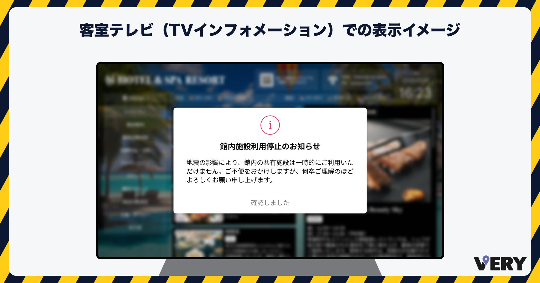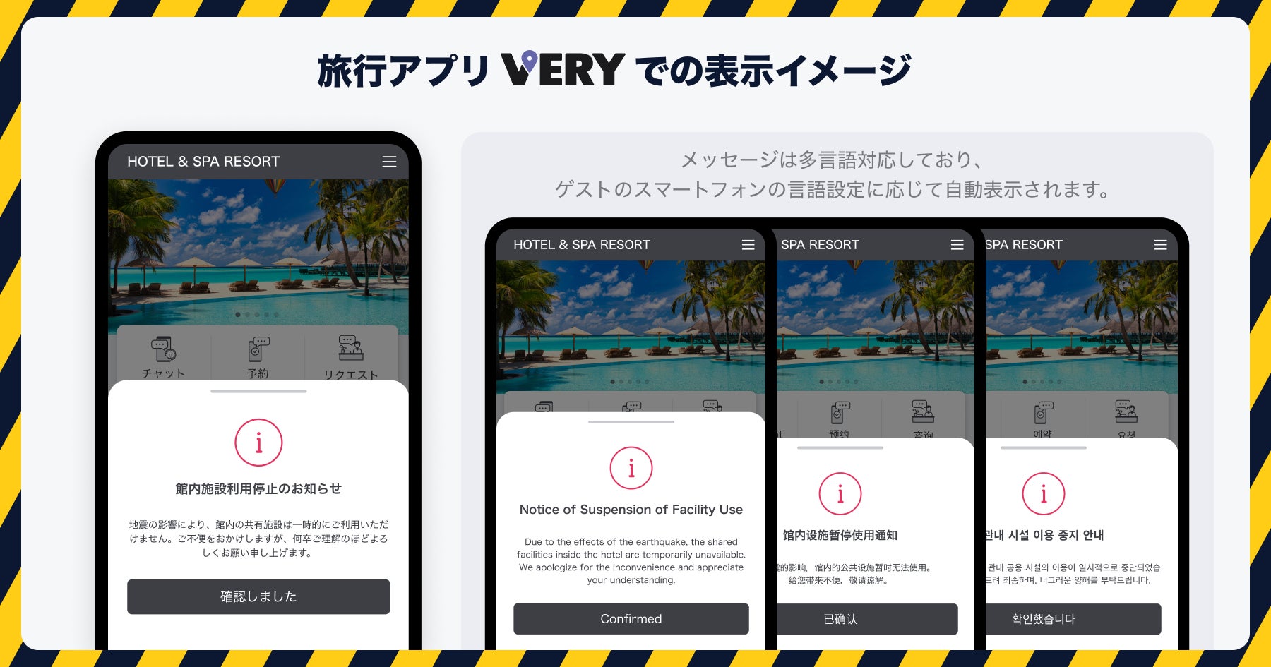 旅行アプリ「VERY」に災害時モードを拡張、客室テレビにも対応